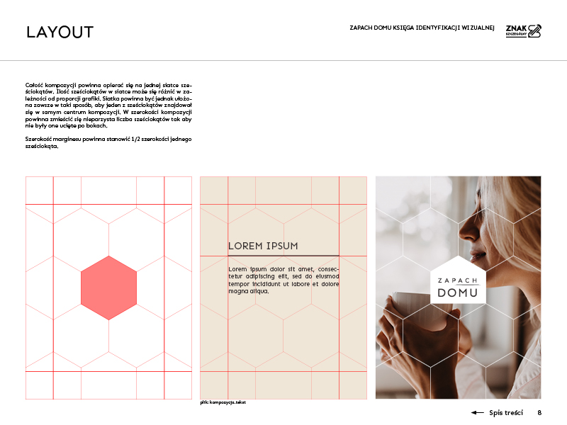 Księga identyfikacji wizualnej zawierająca zasady tworzenia i wizualizacje wybranych elementów: